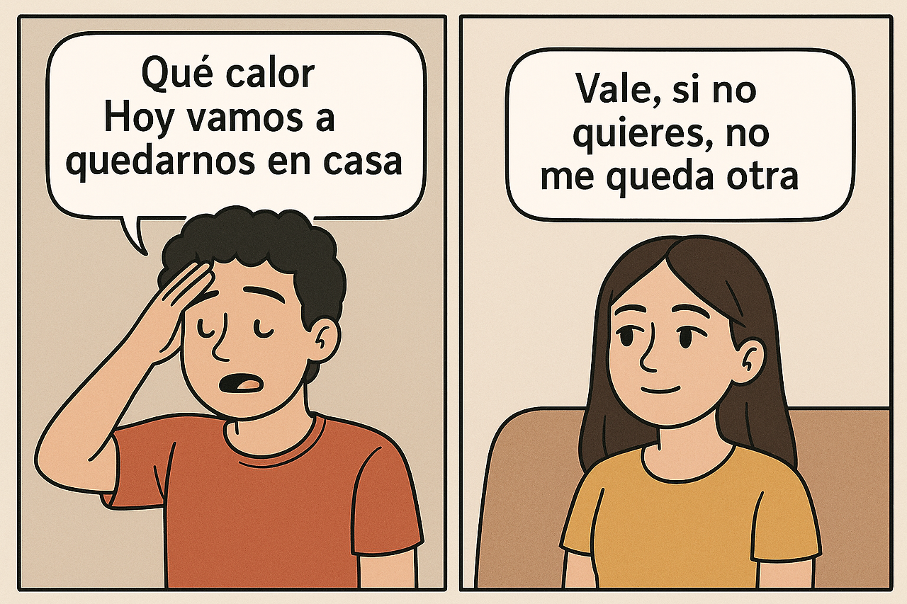 👨🦱: ¡Qué calor! Hoy vamos a quedarnos en casa.