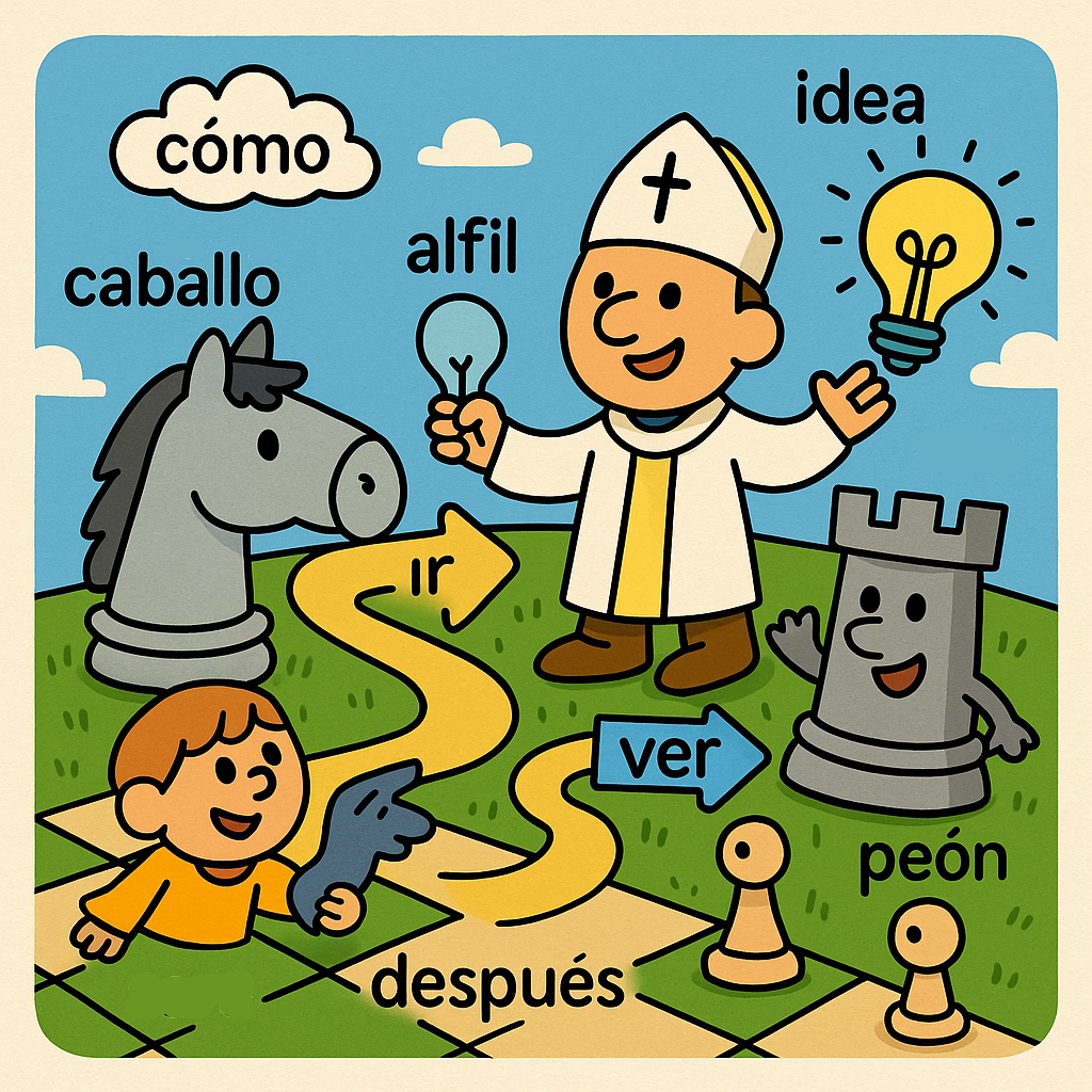 caballo 기사, alfil 비숍, torre 루크, peón 폰, ir 가다, ver 보다, después 나중에, cómo 어떻게, eso 그것, idea 아이디어